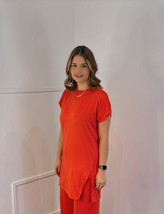 Blusa Michele – Túnica Longa com Fenda Lateral em Malha Confort