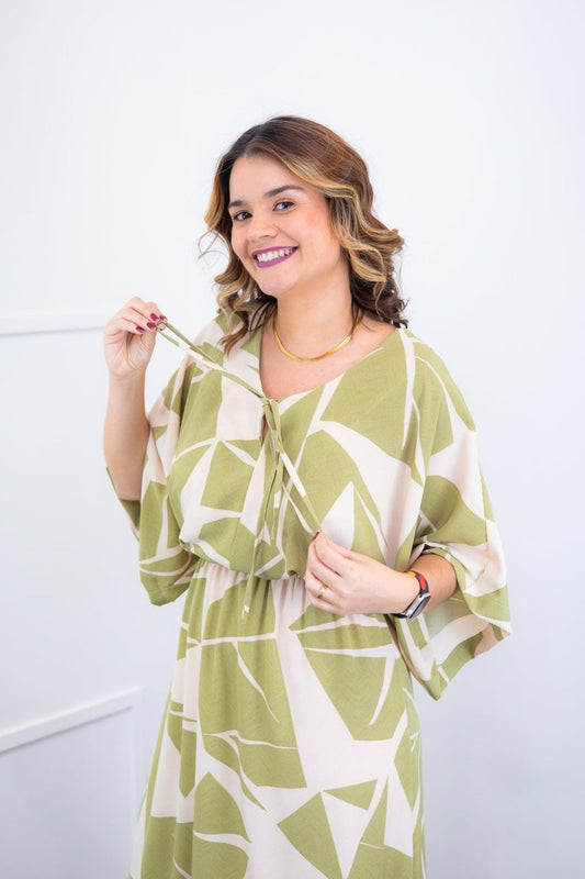 Vestido Luciana – Longuete em Viscomida com Mangas Amplas e Bolsos